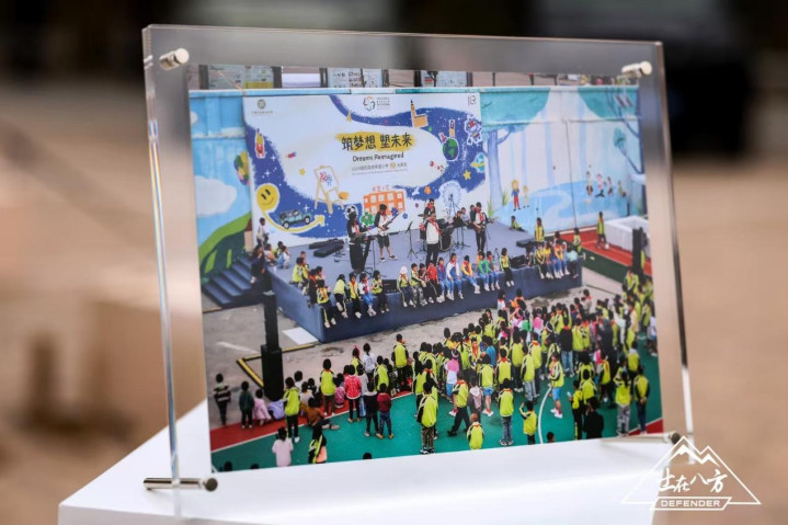 路虎卫士车主与希望小学的孩子们在一起